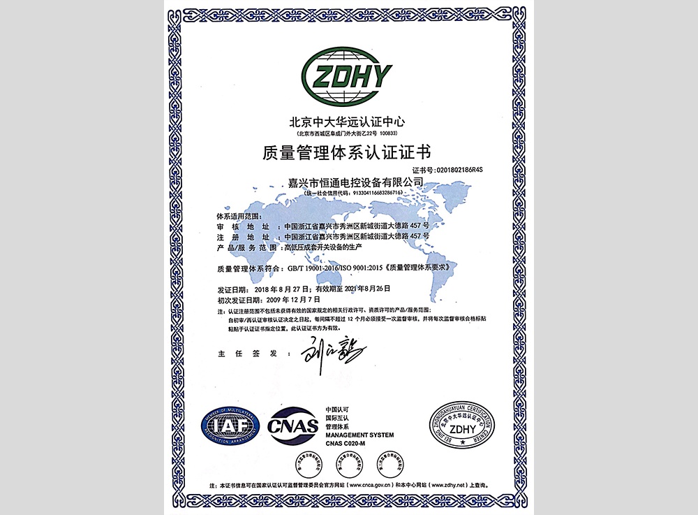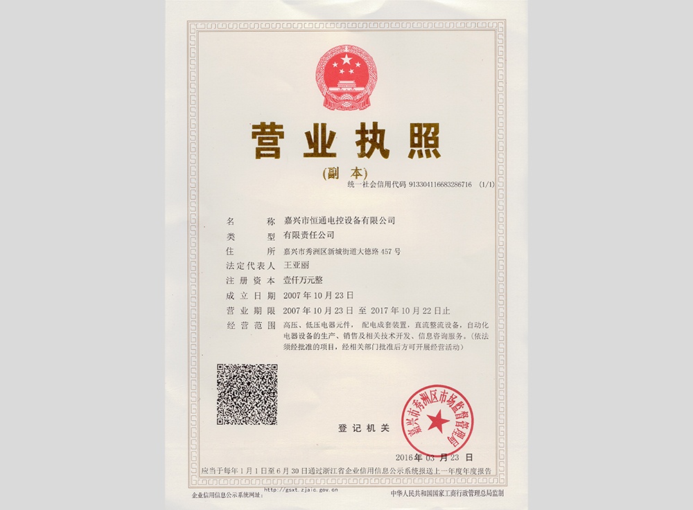 設立嘉興市恒通電控設備有限公司,生產經營高低壓成套配電設備。